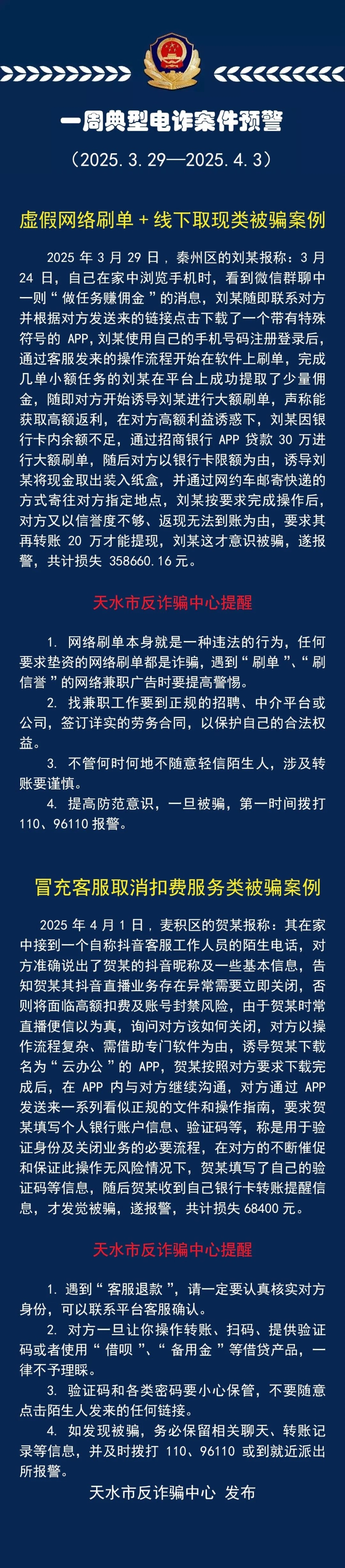 一周典型電詐案件預(yù)警(2025.3.29—2025.4.3)