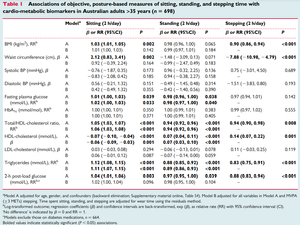 相對(duì)于久坐,站著和溜達(dá)的好處數(shù)據(jù)可見。(Healy G N, et al.2015)