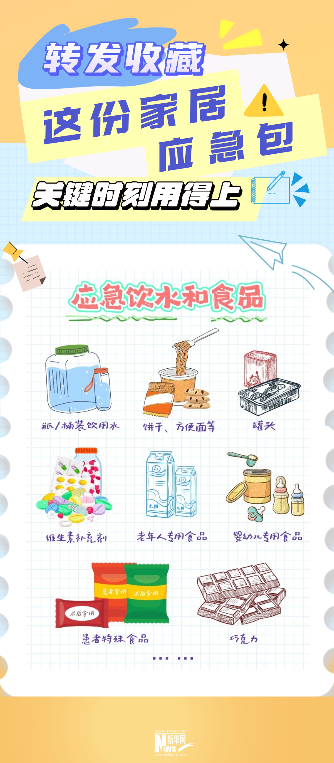 做好家庭應(yīng)急物資儲備,可以有效提升家庭抵御災(zāi)害風(fēng)險的能力,提升自救和互救的能力,有效預(yù)防和降低災(zāi)害損失。建議條件允許的情況下,每個居民家庭都儲備一些必要的應(yīng)急物品,以備不時之需。
