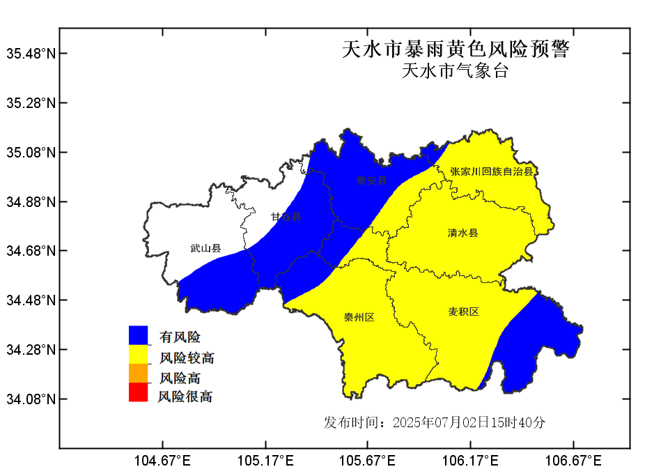 天水市氣象局2025年07月02日16時00分發(fā)布暴雨黃色風(fēng)險預(yù)警: