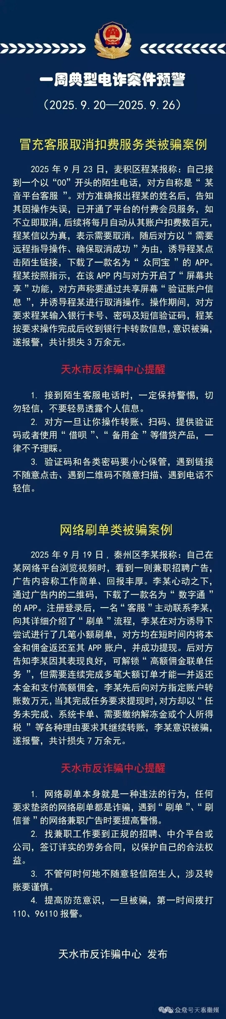 天水公安發(fā)布最新預(yù)警