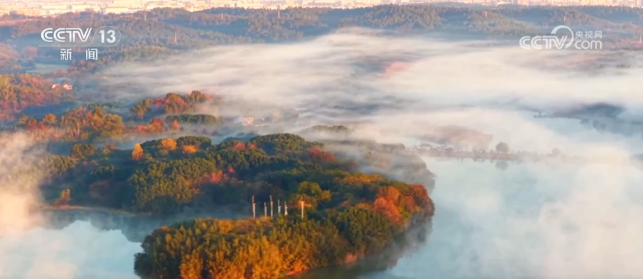 安徽池州:平天湖晨霧繚繞 盡顯詩(shī)意山水之美