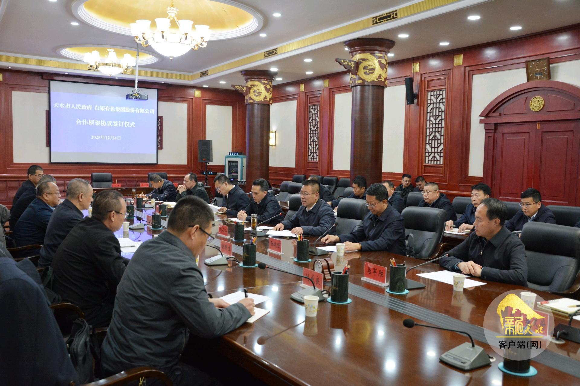 新天水訊【天水融媒記者 馬凱】12月4日,天水市政府與白銀有色集團(tuán)股份有限公司簽署合作框架協(xié)議。
