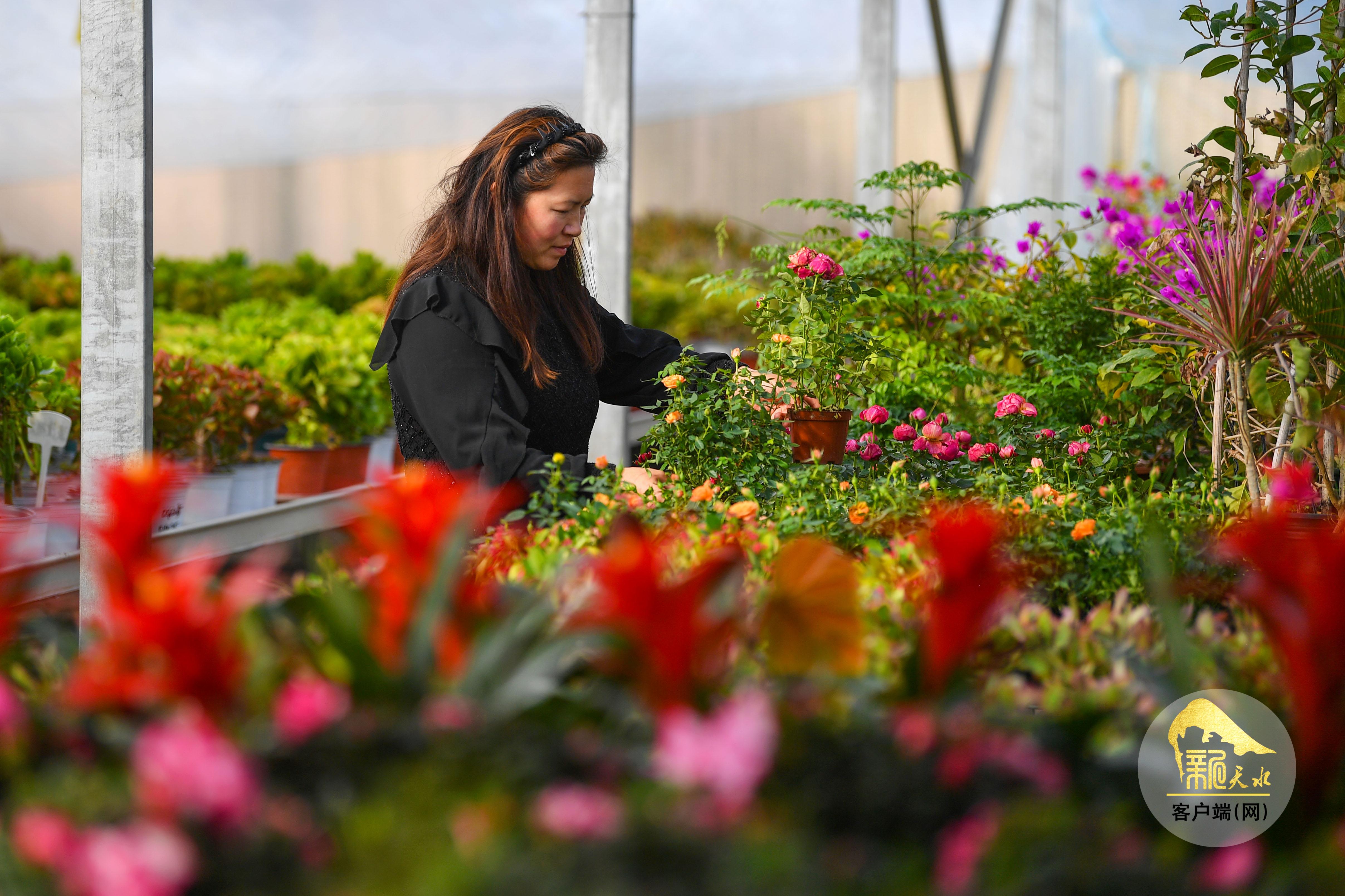 為了迎接年底花卉消費高峰,花圃的負責人馬繼紅和妻子正在加強管護,忙著澆水、修剪、制作盆景。該花圃占地面積2000多平方米,共有大小盆栽5萬多盆、800多個品種,常年繁殖并供應各種時令花草以及專為花海景觀培育的花卉,吸引了周邊的眾多市民和客商前來觀賞、采購。(天水融媒記者 周文濤 景春燕 攝)