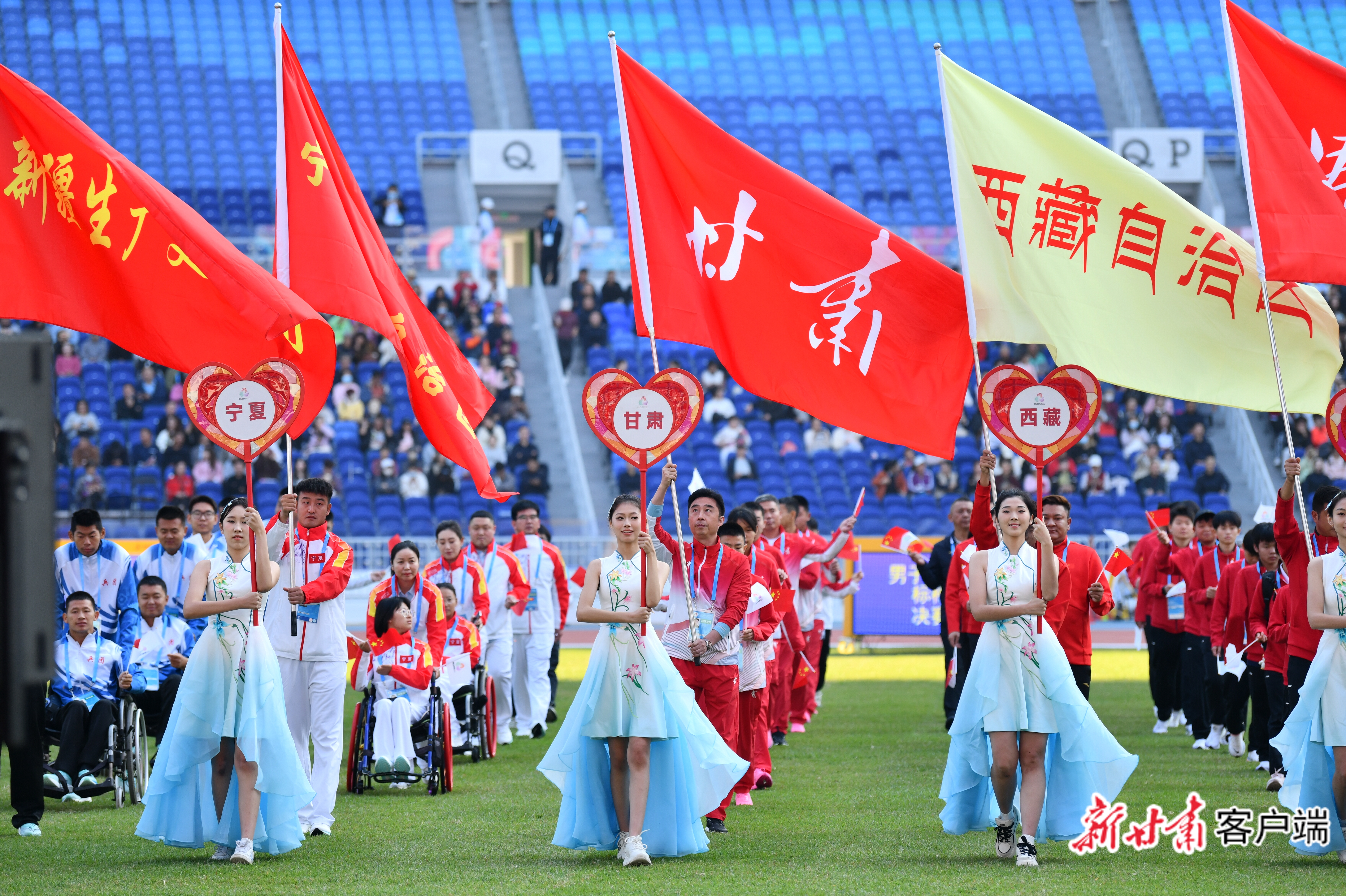 田徑項(xiàng)目比賽開幕式現(xiàn)場(chǎng)。文中圖片均由新甘肅客戶端記者萬及敏攝。