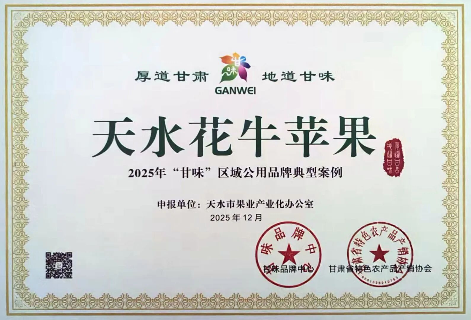 天水花牛蘋果入選2025年“甘味”典型案例