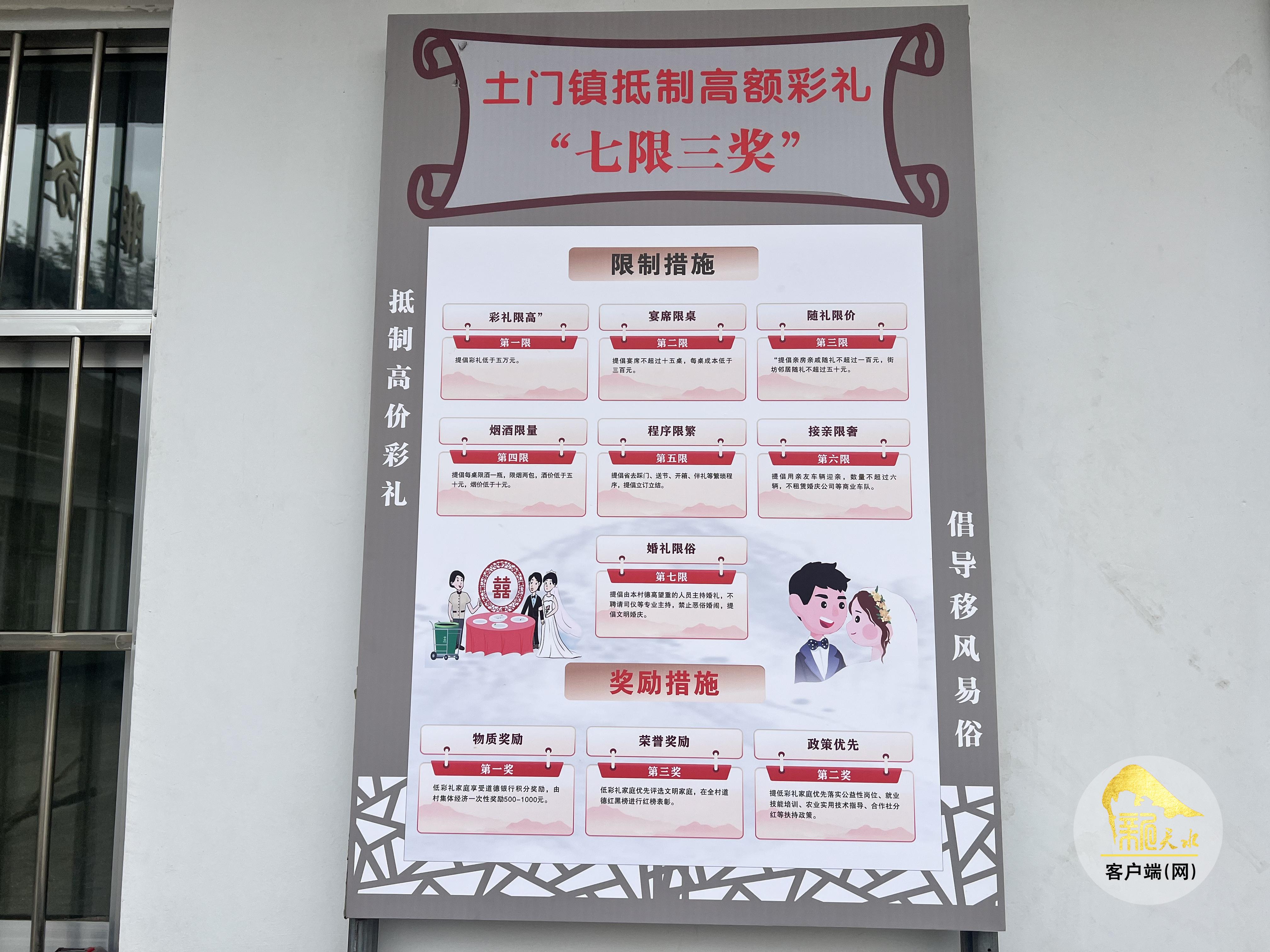 土門(mén)鎮(zhèn)創(chuàng)新推行“一約兩會(huì)三書(shū)”制度,配套道德銀行積分制和抵制高額彩禮“七限三獎(jiǎng)”措施?!捌呦蕖奔床识Y限高、宴席限桌、隨禮限價(jià)、煙酒限量、程序限繁、接親限奢、婚禮限俗;“三獎(jiǎng)”則對(duì)簡(jiǎn)辦家庭給予道德積分、村集體經(jīng)濟(jì)500元至1000元獎(jiǎng)勵(lì)、優(yōu)先落實(shí)培訓(xùn)分紅政策及文明家庭評(píng)選紅榜表彰。“精神激勵(lì)+物質(zhì)鼓勵(lì)”讓文明新風(fēng)持續(xù)升溫。