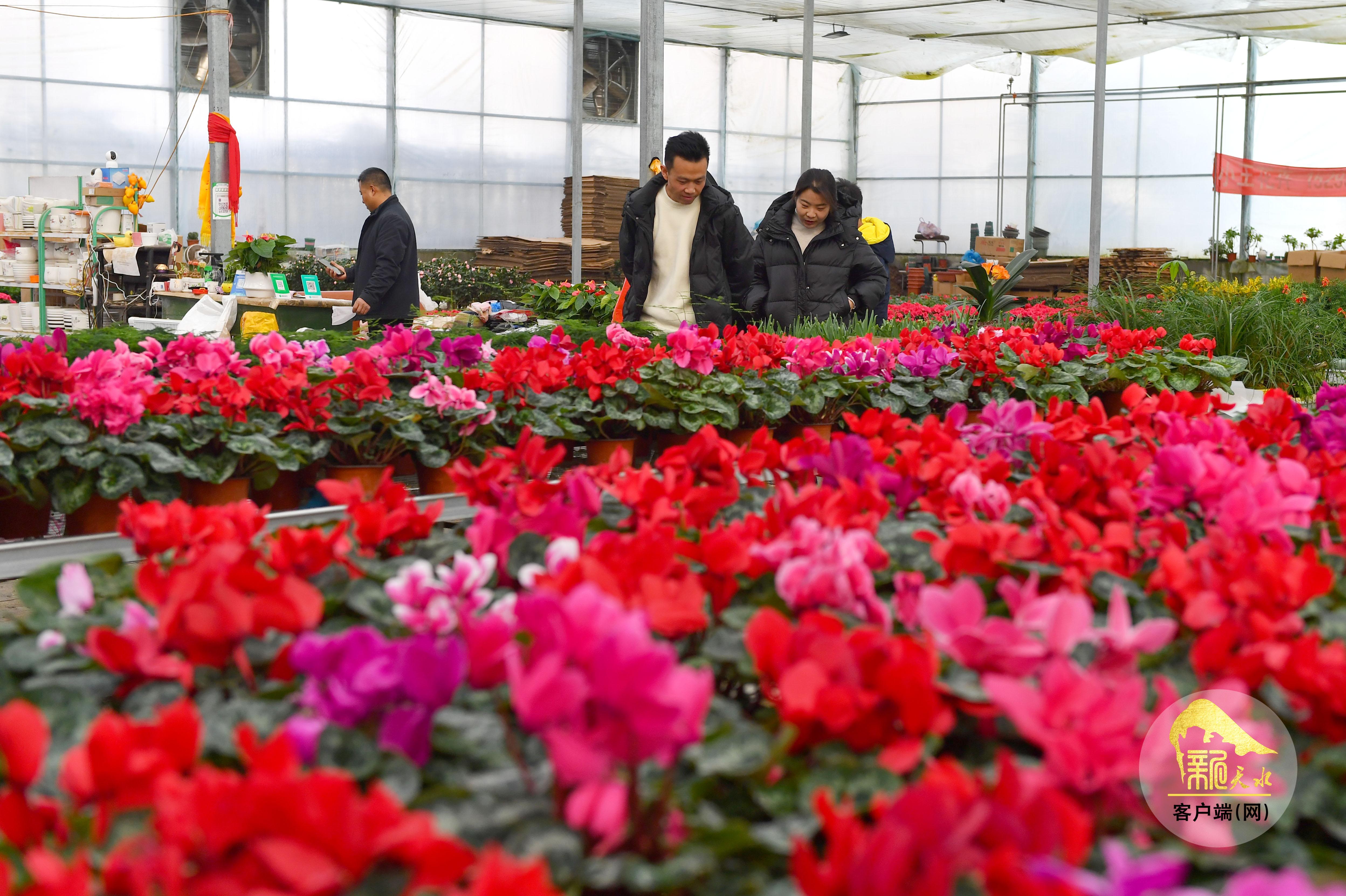 隨著春節(jié)臨近,天水市各大花卉市場年宵花陸續(xù)上市,進入銷售旺季,吸引了眾多市民前來賞花、購花,為即將到來的新春佳節(jié)增添喜慶氣氛。(天水融媒記者 周文濤 攝)