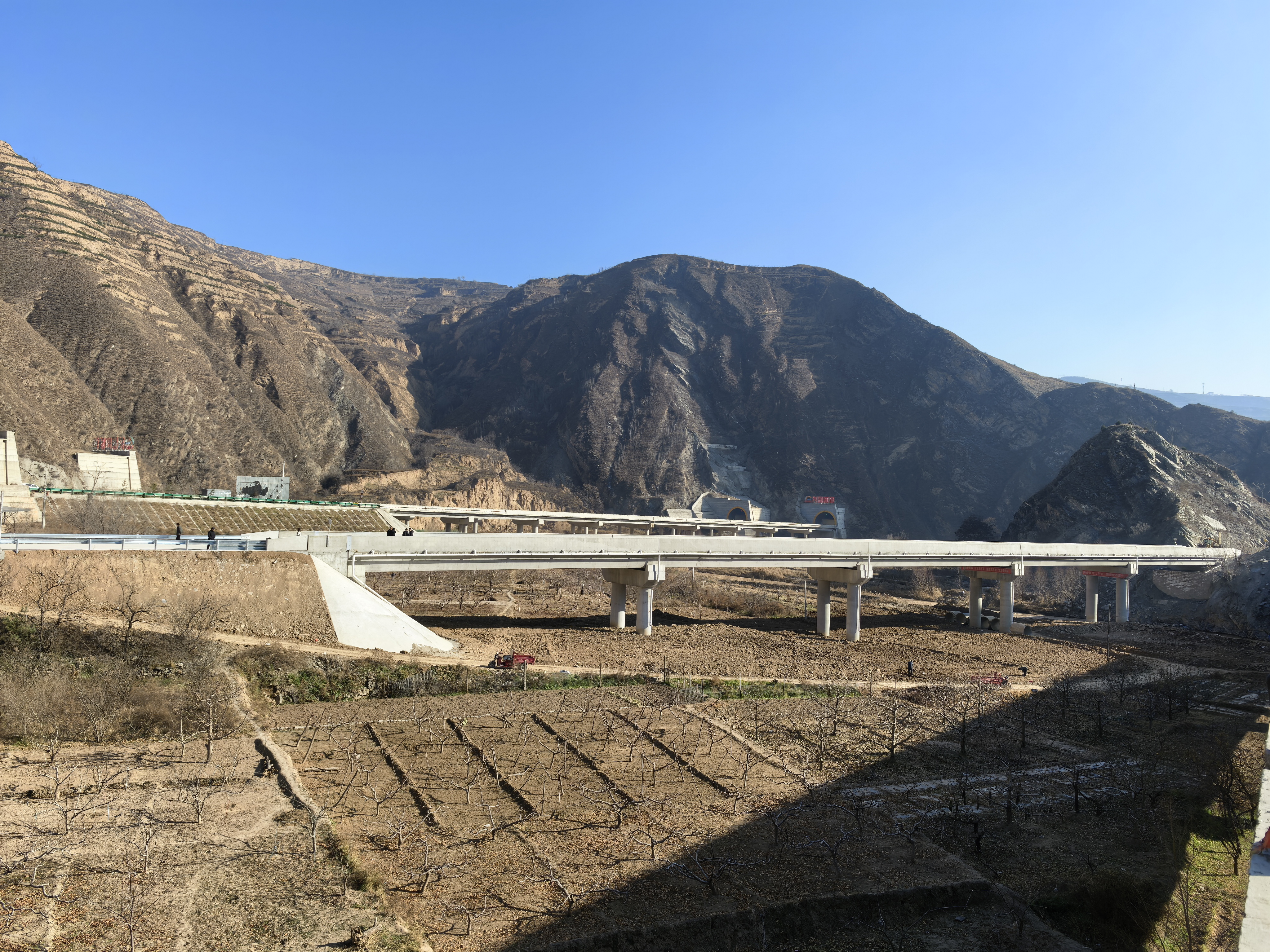 在賈川鄉(xiāng)史峽溝,新建成的大型淤地壩巍然矗立,平整堅固的壩體護坡牢牢鎖住水土,蜿蜒的排水渠延伸向田間。壩下的耕地上,農戶們正趁著冬閑整理土地,籌備來年的經濟作物種植,呈現(xiàn)出一派繁忙的增收景象。