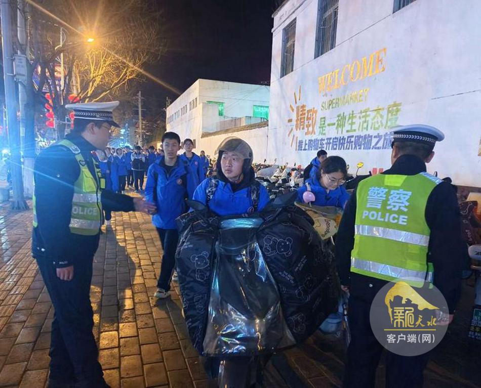 新天水訊【天水融媒通訊員 付蕓蕓】2月27日晚,秦安縣公安局交通管理大隊(duì)在轄區(qū)各初、高中及職業(yè)院校周邊路段,開展夜間護(hù)學(xué)任務(wù),重點(diǎn)針對(duì)騎行電動(dòng)自行車的學(xué)生群體開展佩戴安全頭盔的宣傳、勸導(dǎo)及整治工作,以進(jìn)一步加強(qiáng)轄區(qū)夜間道路交通安全管理,切實(shí)保障夜間放學(xué)時(shí)段廣大學(xué)生的出行安全,預(yù)防和減少涉及學(xué)生的交通事故。