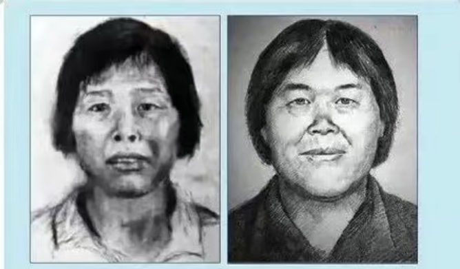 △圖左(2017年,廣東警方發(fā)布的第一張“梅姨”畫像),圖右(2019年,林宇輝畫的“梅姨”新版畫像)。