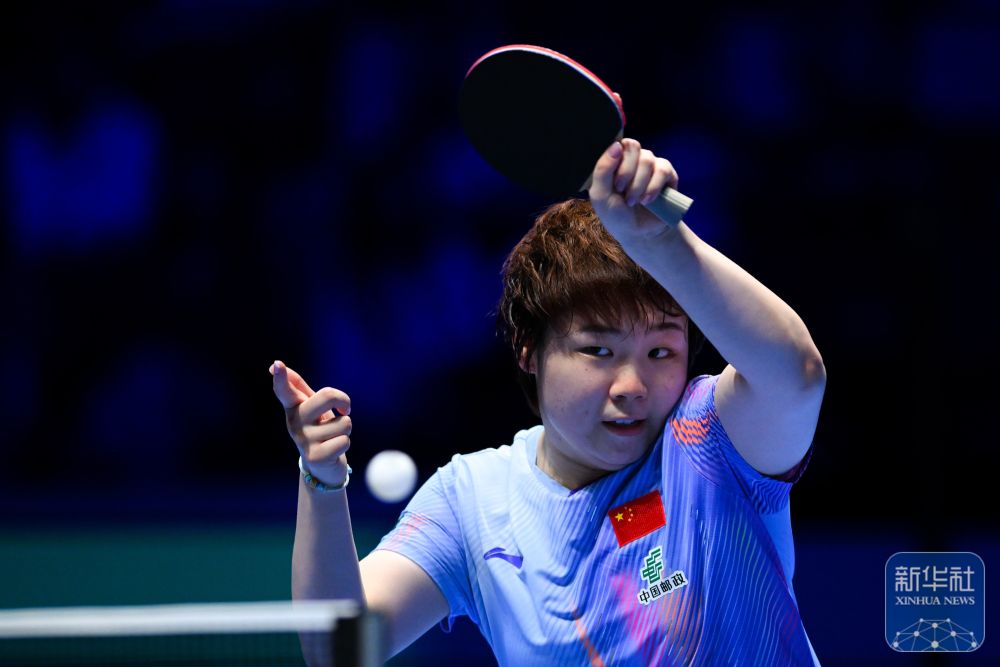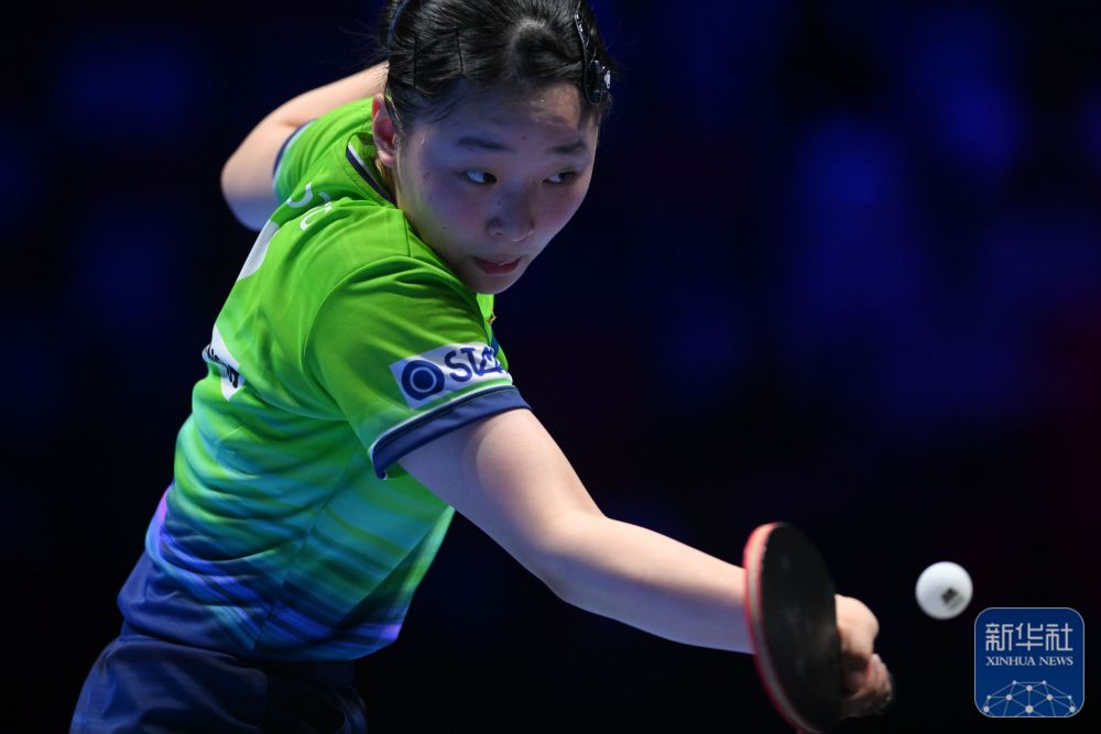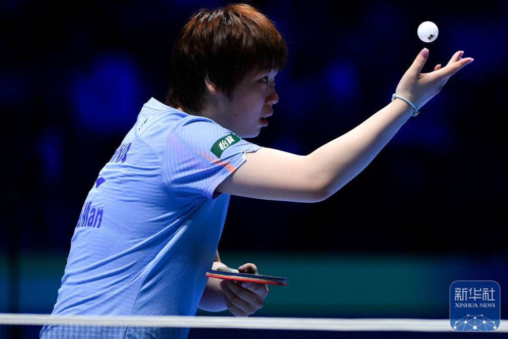 ↑中國選手蒯曼在女子單打小組賽中回球。最終,她3比2戰(zhàn)勝法國選手夏洛特·盧茨。
