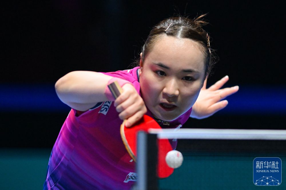 ↑日本選手伊藤美誠在女子單打小組賽中回球。最終,她3比2戰(zhàn)勝加拿大選手張默。