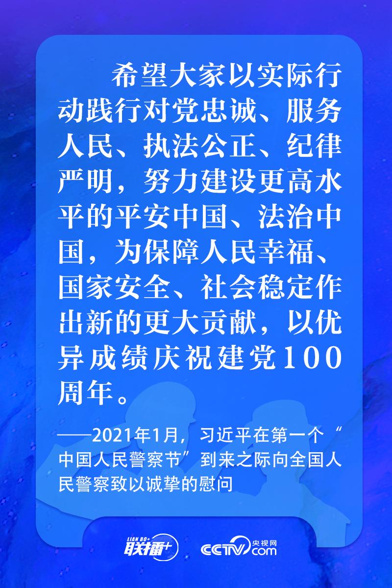 聯(lián)播+“中國人民警察節(jié)”前夕,習近平總書記代表黨中央,向全國人民警察致以節(jié)日祝賀和慰問,希望同志們矢志不渝做黨和人民的忠誠衛(wèi)士,為維護國家安全和社會穩(wěn)定再立新功。