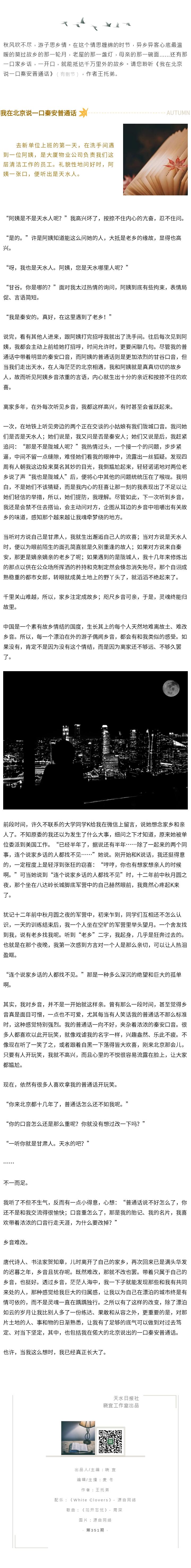 天水時(shí)間 | 我在北京說一口秦安普通話