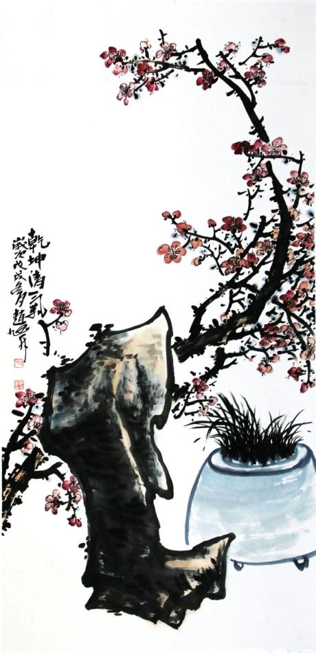 近年來,趙旭升主攻寫意花鳥,兼及山水,其花鳥畫作品宗法清末海派大師吳昌碩、任伯年,明代寫意花鳥大師徐渭、陳淳,梅花作品主要宗法清代大師金農(nóng)。