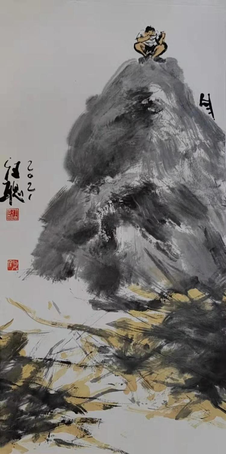 任聰?shù)乃?,保持了來自“學(xué)院體”的樣貌,所繪物象圖景趨于似與不似之間,恍兮惚兮其中有象,惚兮恍兮其中有物,他不大介意規(guī)矩法度,總是在逸筆草草或粗頭亂發(fā)中表達(dá)性靈或景象,大有新文人畫的派頭,有時(shí)水與墨、與紙的幻化莫測,造成了虛靈、松脫的畫面。他傾心于畫那些簡約而意味質(zhì)樸的物象。其實(shí)畫家畫了什么并不重要,重要的是筆墨里有畫家的生命脈息,范寬、李成的正大氣象固然也好,但金冬心、齊白石一花一世界,一葉一菩提當(dāng)然也是成道之途。畫家年輕,且有去俗的“書生氣”,這都是成為好畫家的條件,尚需時(shí)日,相信任聰歷經(jīng)風(fēng)雨之后,定會(huì)取得“真經(jīng)”。