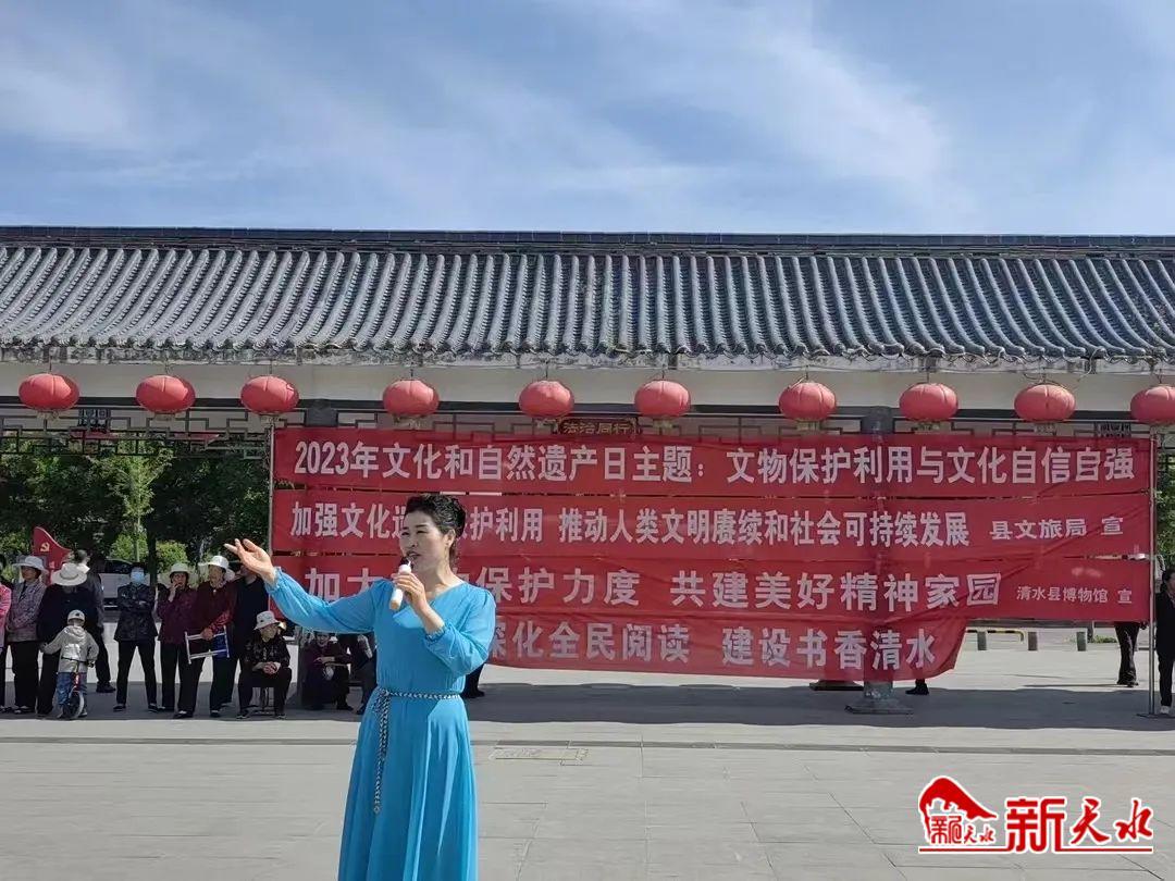 新天水訊【記者劉蕾】為進(jìn)一步提高人民群眾非物質(zhì)文化遺產(chǎn)保護(hù)意識(shí),傳承、弘揚(yáng)中華優(yōu)秀傳統(tǒng)文化,營造非遺保護(hù)良好社會(huì)氛圍,6月9日,在第七個(gè)“文化和自然遺產(chǎn)日”到來之際,由清水縣文體廣電和旅游局統(tǒng)一組織,圖書館、文化館、博物館攜手開展的2023年清水縣“文化和自然遺產(chǎn)日”主題宣傳活動(dòng)在充國廣場舉行。