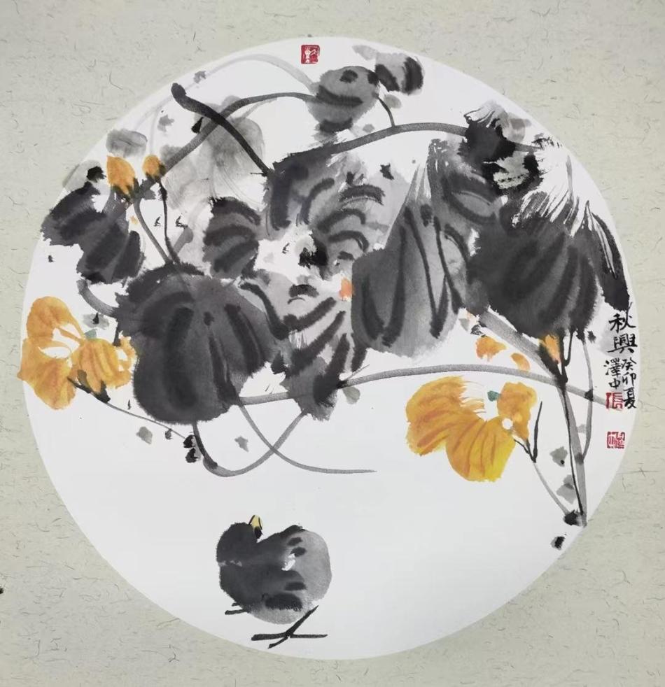 澤中的書畫,在當地已小有名氣,他現(xiàn)在是天水市美協(xié)的副主席。然而,他并不在乎這些外在的頭銜,他說畫好畫才是硬道理。每當對著那些欣賞他字畫的人、評論他字畫的人以及索要他字畫的人,他都十分感激,又極其謙恭,那時他又像個小學生一樣可愛,與那個強悍豪放的張澤中判若兩人。他對藝術總是滿懷謙恭,心懷景仰。他在大學期間就受過良好的專業(yè)教育,之后又孜孜不倦地從古人那里吸收營養(yǎng)、汲取精華,儲備了系統(tǒng)而豐富的理論知識,這讓他的創(chuàng)作少走了許多彎路,也讓他的作品古意盎然、優(yōu)雅生動,充溢著濃濃的人文氣息和生活氣息。他畫的梅蘭竹菊,皆取法傳統(tǒng),又不拘泥傳統(tǒng),大膽構圖,謹慎著墨,筆筆有來路,處處有秩序?;蛏n勁,或古拙,或疏朗,或細密,既有提按頓挫的節(jié)奏感,又有空靈雋永的詩意性,整體畫面極富立體感、層次感和抒情性。一枝一葉都宣泄著他內心的隱秘情感,一花一草亦展露著他獨立的精神個性。他的山水畫,遠取其勢,近取其質,筆墨濃淡相宜,線條清晰順暢,墨色勾畫的遠山近水,層次分明,富有韻味。尤其是近年來,他把“家鄉(xiāng)元素”納入自己山水畫的視野,創(chuàng)作了大量以甘谷山水風物為題材的“黃土情”系列作品,反響熱烈。