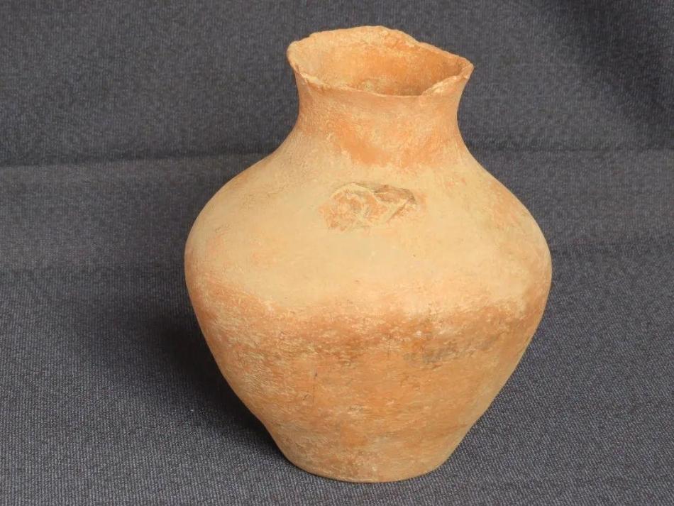 張家臺(tái)子遺址出土齊家文化泥質(zhì)紅陶罐。口徑8.5厘米,底徑8厘米,腹徑17.2厘米,通高20厘米,重885克。泥質(zhì)紅陶,侈口,束頸,溜肩,鼓腹,小平底。素面,器表光滑,口沿殘。