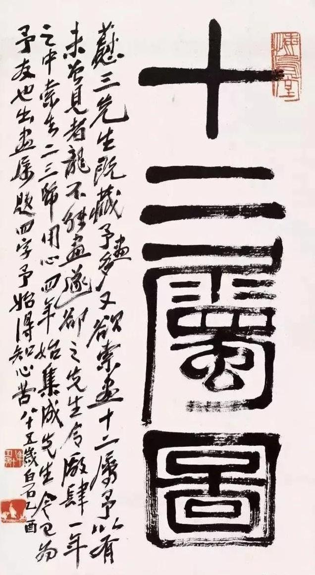 齊白石題跋 《十二屬圖》封面  1945年 北京畫院藏