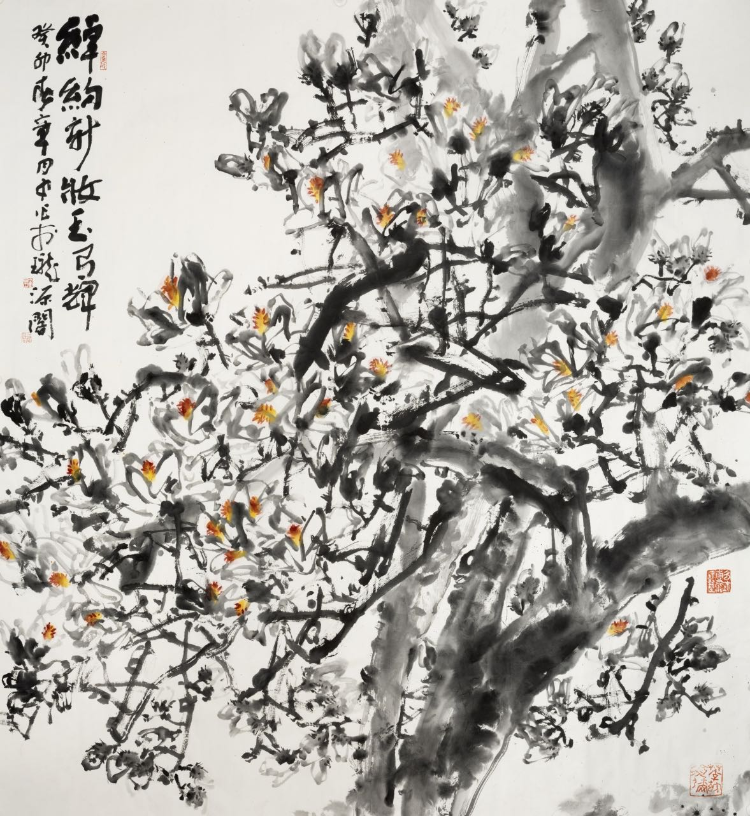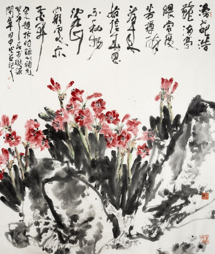 徐渭、八大山人、石濤、陳洪綬、任伯年、吳昌碩、齊白石、張大千、潘天壽等大師都對他的藝術(shù)進(jìn)步產(chǎn)生了極大影響。以最大的力氣向傳統(tǒng)學(xué)習(xí),又以最大的勇氣從傳統(tǒng)中走出來,完成了他繼承傳統(tǒng)的“長征”。