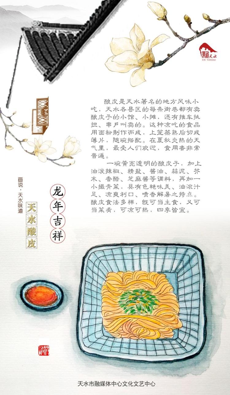 釀皮是天水著名的地方風味小吃,天水各縣區(qū)的每條街巷都有賣釀皮子的小館、小攤,還有推車挑擔、串戶叫賣的。這種涼吃的食品用面粉制作而成,上籠蒸熟后切成薄片,隨碗搭配。在夏秋炎熱的天氣里,最受人們歡迎,食用者非常普遍。