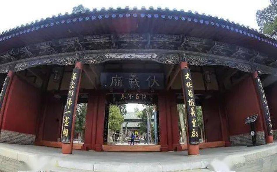 在天水市秦州區(qū)西關(guān)伏羲路,有一座古柏掩映、殿宇巍峨的古建筑群,這是我國現(xiàn)存最完整、建筑年代最早、規(guī)模最宏大的伏羲廟,整個(gè)建筑群坐北朝南。牌坊、大門、儀門、先天殿、太極殿沿縱軸線依次排列,層層推進(jìn),莊嚴(yán)雄偉,廟門上高懸“開天明道”“與天地準(zhǔn)”兩方匾額,引人注目。