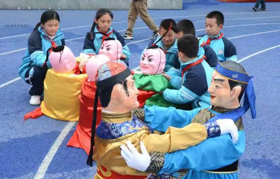 “哇,木人摔跤真是太精彩啦,我也要學(xué)習(xí)木人摔跤表演……”3月1日下午,清水縣軒轅小學(xué)操場上,木人摔跤表演贏得師生的陣陣喝彩。在該校定期開展的少年宮活動(dòng)中,緱紅斌和他的徒弟高宏正在指導(dǎo)學(xué)生進(jìn)行木人摔跤表演。只見穿著行頭的學(xué)生在兩位傳承人指導(dǎo)下,跟著音樂一會(huì)兒向前、一會(huì)兒向后、一會(huì)兒又突然來個(gè)轉(zhuǎn)身,好不熱鬧。圍觀的學(xué)生更是躍躍欲試,爭著想要一試身手。