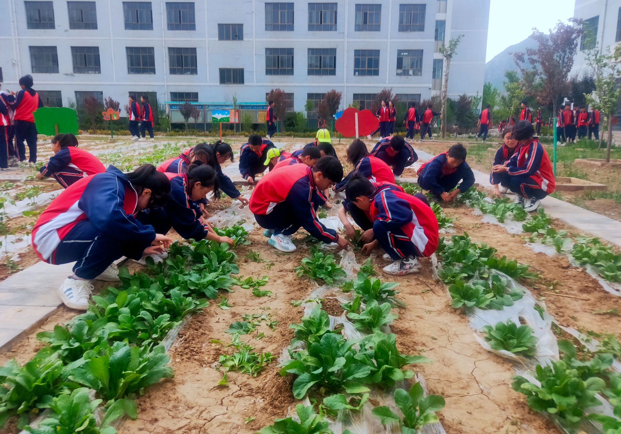 校園里的省級勞動教育實踐基地,就是同學(xué)們的“快樂農(nóng)場”——翻土、播種、澆水、豐收,每個班級都有專屬“責任田”,大家全程參與農(nóng)作物種植,在汗水中體會“一粥一飯來之不易”的深刻內(nèi)涵。