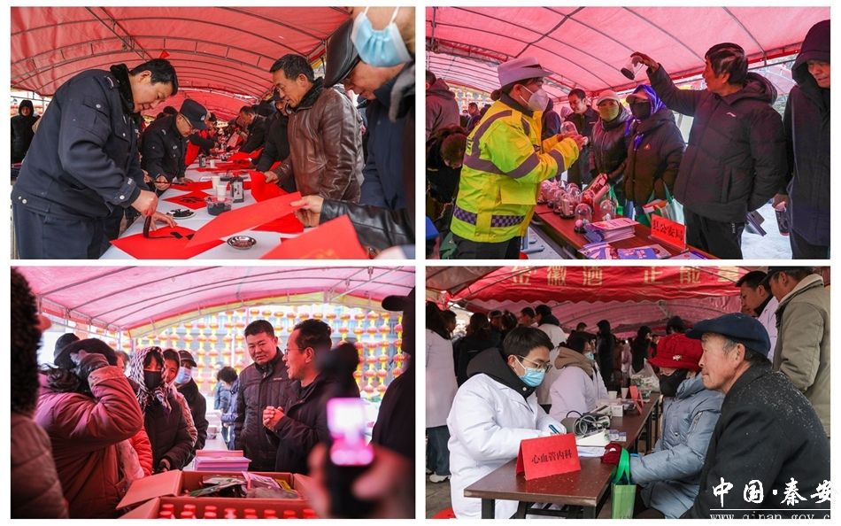 活動現(xiàn)場,書畫名家們凝神揮毫,為鄉(xiāng)親們書寫春聯(lián)、福字與書畫作品;文藝匯演用歡快的歌舞表演贏得臺下掌聲、歡呼聲此起彼伏;農(nóng)業(yè)專家們針對秦安蘋果、花椒種植中的病蟲害防治、剪枝管理等關(guān)鍵問題進行講解;醫(yī)護人員耐心為鄉(xiāng)親們量血壓、測血糖,細(xì)致篩查高血壓、關(guān)節(jié)炎等常見病,向群眾派發(fā)健康手冊,普及傳染病防控要點;同時,各單位還通過設(shè)置展板、發(fā)放宣傳資料等方式,有序開展移風(fēng)易俗、物資贈送、科技體驗、生態(tài)環(huán)保、法律法規(guī)咨詢、道路交通安全、消防宣傳等惠民活動。