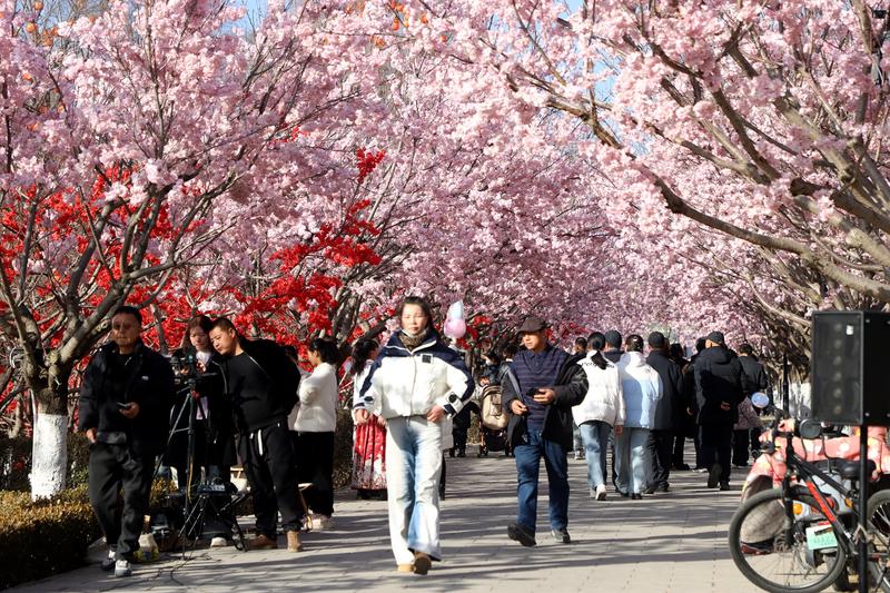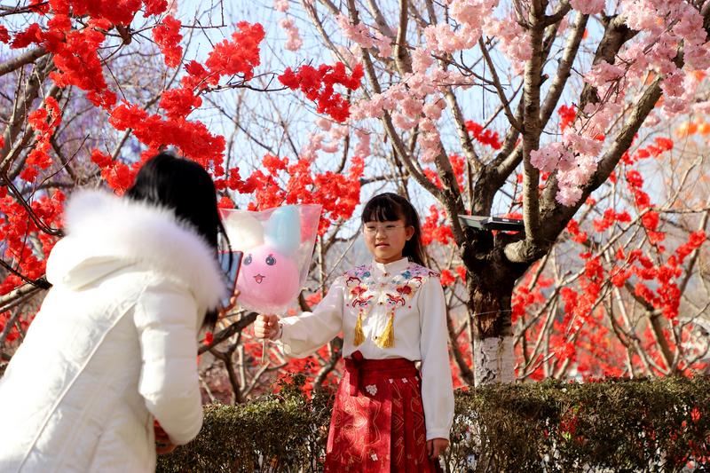 記者看到,不少市民趁著晴好天氣結(jié)伴而來,或在花樹、燈籠樹下定格笑臉,或沿著湖邊漫步賞景,孩子們追逐嬉戲,歡聲笑語縈繞湖畔。