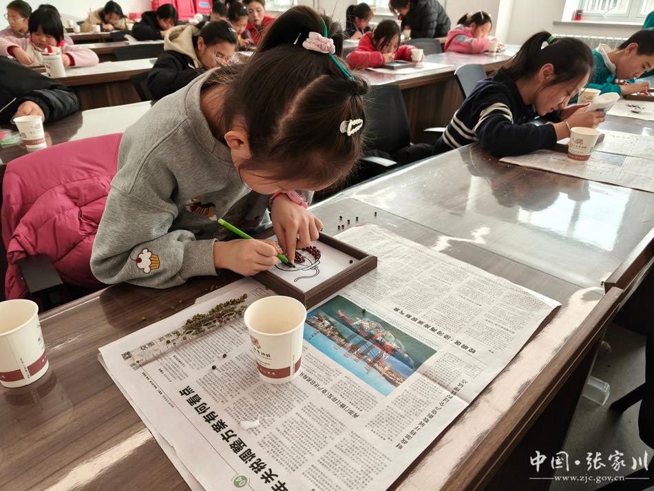 進(jìn)入手工制作環(huán)節(jié),工作人員為大家準(zhǔn)備了紅豆、綠豆、小米、黑米等多種臘八粥常用五谷雜糧,讓大家體驗(yàn)傳統(tǒng)手工藝的樂趣。孩子們?cè)谥驹刚叩闹笇?dǎo)下,發(fā)揮創(chuàng)意與想象,將五谷拼貼出春節(jié)福字、豐收糧倉、吉祥燈籠等圖案,還有不少學(xué)生以館藏文物輪廓為藍(lán)本,用雜糧復(fù)刻出古樸的器物紋樣。指尖翻飛間,一顆顆雜糧變成了一幅幅充滿童趣與年味的作品,孩子們?cè)趧?dòng)手實(shí)踐中真切感受“五谷”所代表的豐收喜悅與吉祥寓意,加深了對(duì)臘八節(jié)“敬農(nóng)惜糧”傳統(tǒng)的理解。
