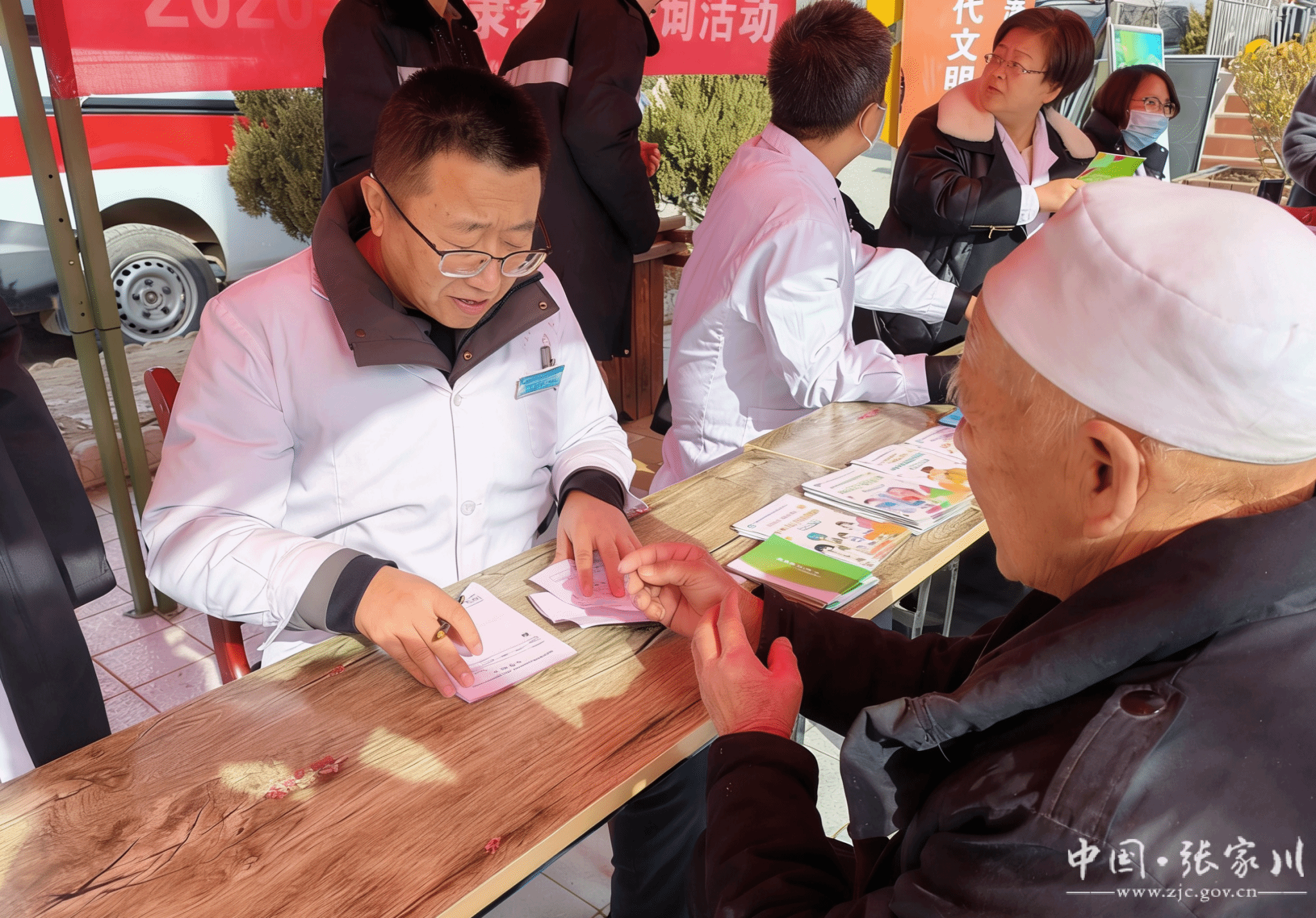 在縣衛(wèi)健局設(shè)立的義診服務(wù)區(qū),來自縣第一人民醫(yī)院的大夫耐心為村民量血壓、聽心肺、解答健康咨詢,并免費發(fā)放常用藥品?!皩<业郊议T口給看病,還講了平時要注意的保健知識,心里踏實多了?!眲倓傋鐾隀z查的村民馬大爺笑著說。