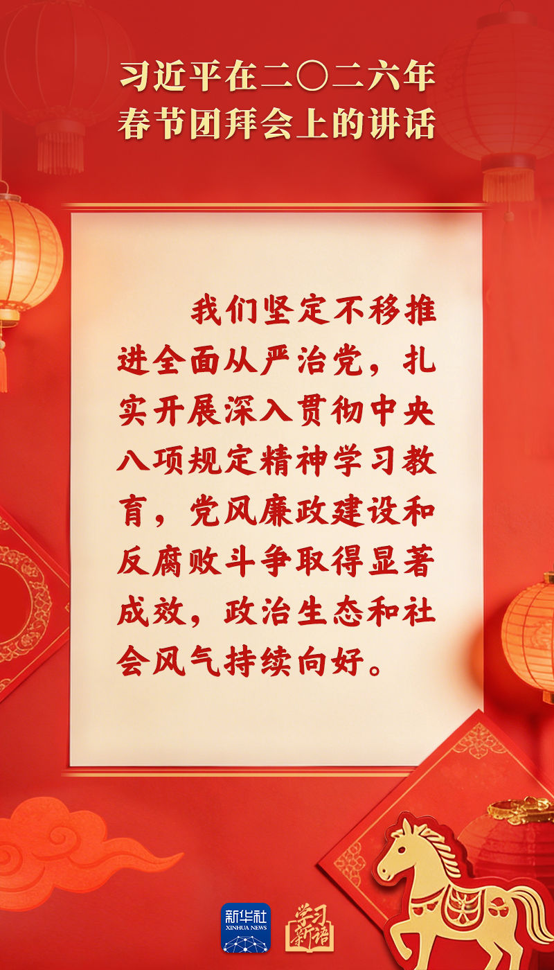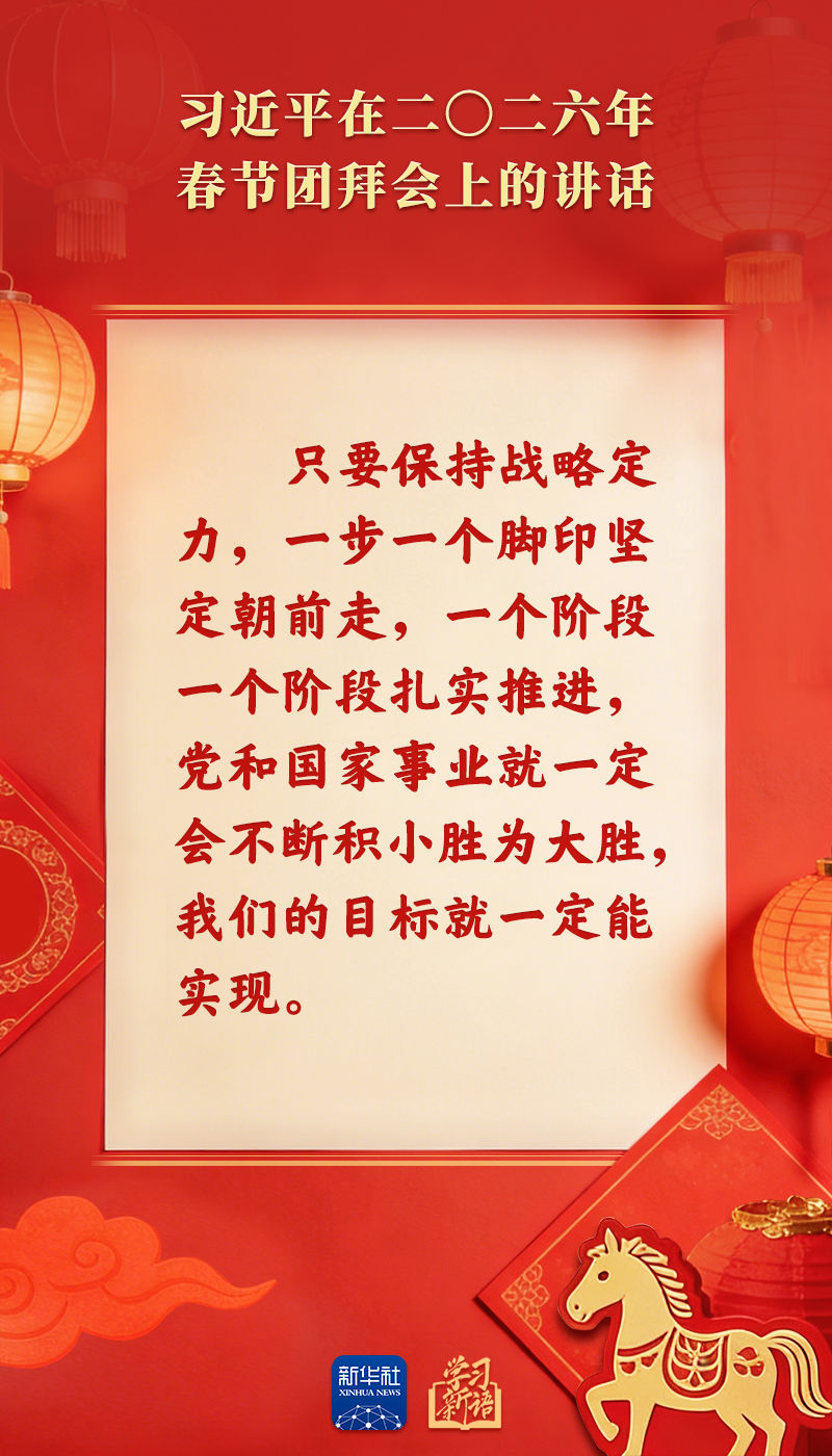 原標(biāo)題:學(xué)習(xí)新語|策馬揚(yáng)鞭、勇往直前!2026年春節(jié)團(tuán)拜會總書記講話金句